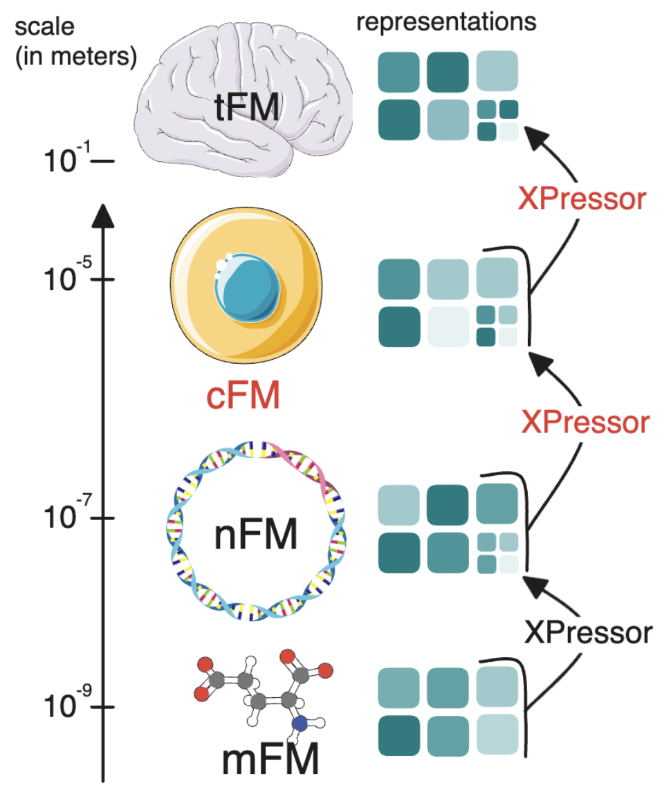 extending it outside single cell, it could be a way to learn across biological scales by compressing cells into input tokens for tissues, by compressing genes into input tokens for cells.